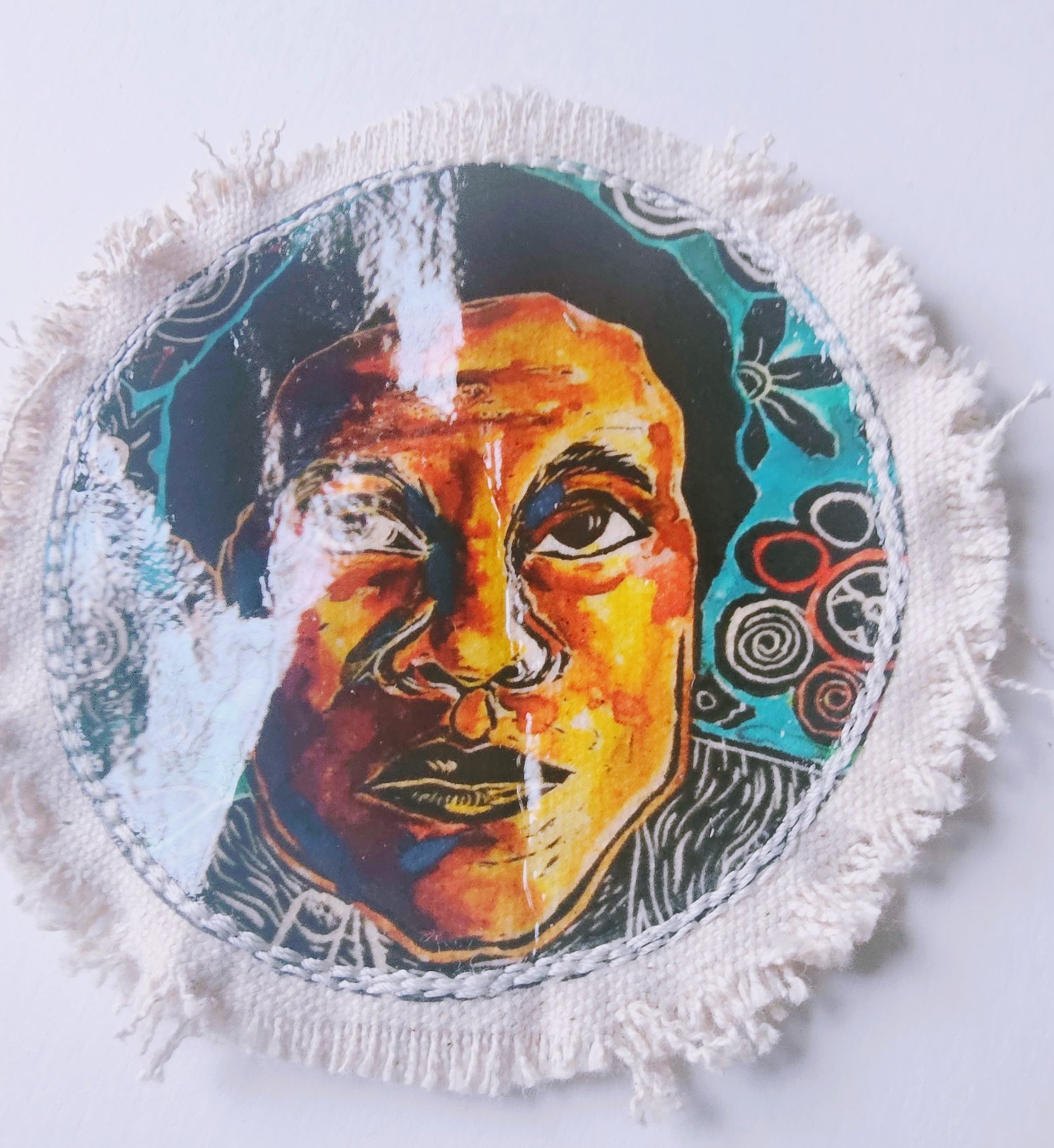 Make a statement on your favorite jacket, bag, or accessories with this unique and beautifully crafted patch. Originally constructed from a linocut to craft a series of mono prints, the James Baldwin honors his contributions to literature and social justice.